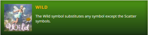Wild symbols are represented by cute fairies flying through a chamomile field. Wild icons can substitute any icon except scatters to form a winning combination.